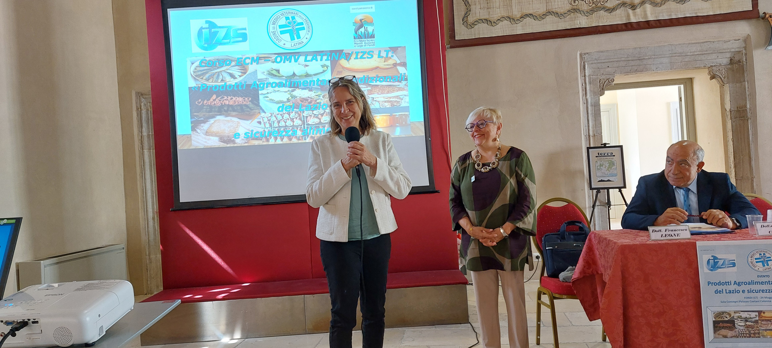 Sotto la sapiente direzione dei Responsabili scientifici Dott.ssa Tiziana Zottola e Dott. Francesco Leone (Presidente e Vicepresidente dell’OMV Latina), dopo i saluti del Dr. Lucio De Filippis (Direttore Ente Parco Naturale Regionale Monti Ausoni e lago di Fondi che gestisce il Palazzo Caetani) e del Dott. Giorgio Saralli (direttore della sede territoriale Lazio sud dell’IZS LT) si sono susseguiti i numerosi i relatori di questo evento vista la vastità dell’argomento e la specificità della regolamentazione sui prodotti tipici della nostra Regione.